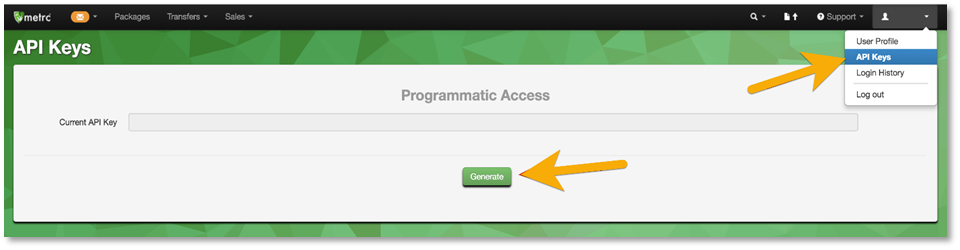 - When logged in, navigate to the API keys page to see your user specific API Key. If one is not displayed, the user will need to "Generate" one. WARNING: Do not generate a new key if there is one present – this will invalidate the existing key that may be used in your other system(s), such as your POS. If the key is regenerated, it will need to be updated in other systems.
